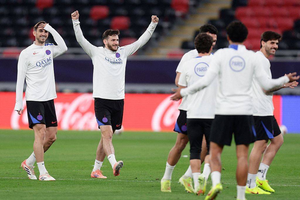 巴黎圣日耳曼进行最后的备战训练。